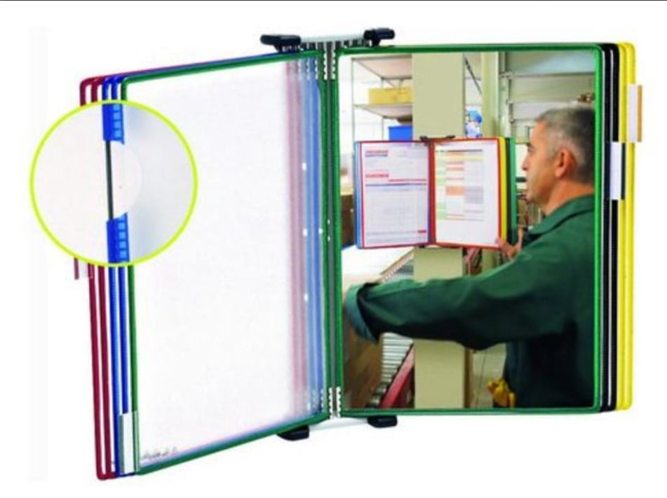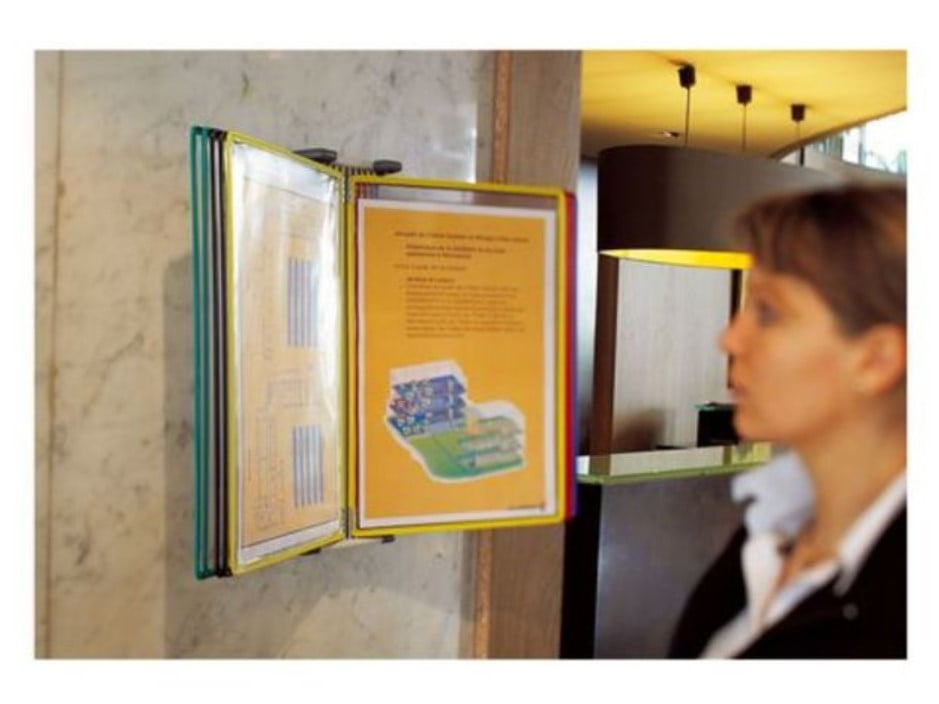 Le protège-documents pivotant mural Tarifold facilite la consultation de documents dans vos locaux. Ce modèle est doté d’éléments superposables permettant d’obtenir un ensemble de documents beaucoup plus vaste. Grâce à ses 10 pochettes intégrées couleurs assorties.